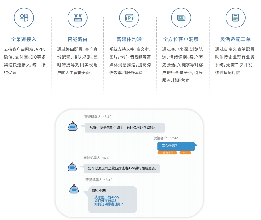ÔÚÏ߿ͷþ»ùÓÚNETTY¿Í»§¶Ë/·þÎñ¶Ë¿ò¼ÜʵÏÖ£¬ÓɷÿͶˡ¢×øÏ¯ÊÂÇę́¡¢ºǫ́ÖÎÀíÈý¸ö²¿·Ö×é³É¡£¡£ÒÔÈ˹¤ÖÇÄÜÒýÇæÍêÉÆÔÚ Ïß·þÎñÄÜÁ¦£¬Ê¹ÏµÍ³Äܹ»ÎÞа¶Ô½ÓÖÇÄÜ֪ʶ¿â£¬Ö§³ÖÖÇÄÜ»úеÈËÓ¦´ðºÍÏàËÆÎÊÍÆ¼ö£¬Ö§³Ö¸öÐÔ»¯Öª×ã¶ÈÆÀ¼Û¡£¡£